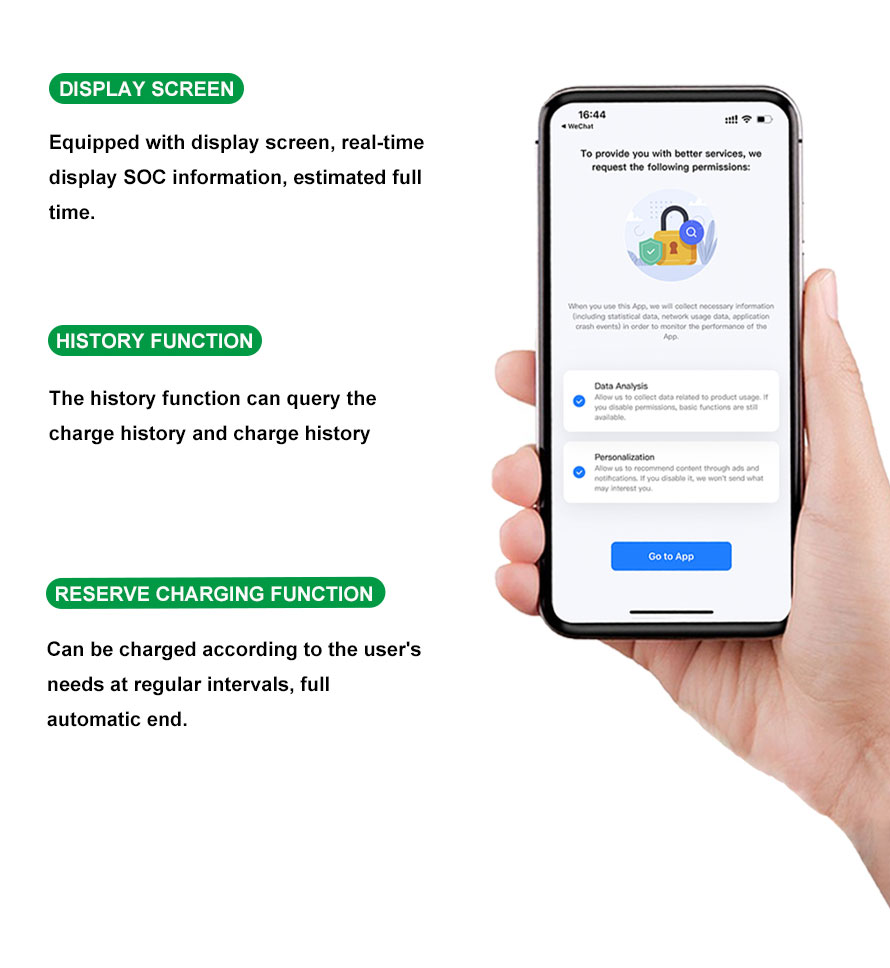 • Equipado con pantalla que muestra información del estado de carga (SOC) en tiempo real y tiempo de funcionamiento estimado.