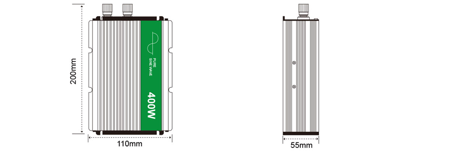 Cuando el voltaje de la batería alcanza 10 V ± 0,5 V, el zumbador suena rápidamente y la luz LED se enciende en rojo, la salida de CA se apaga.